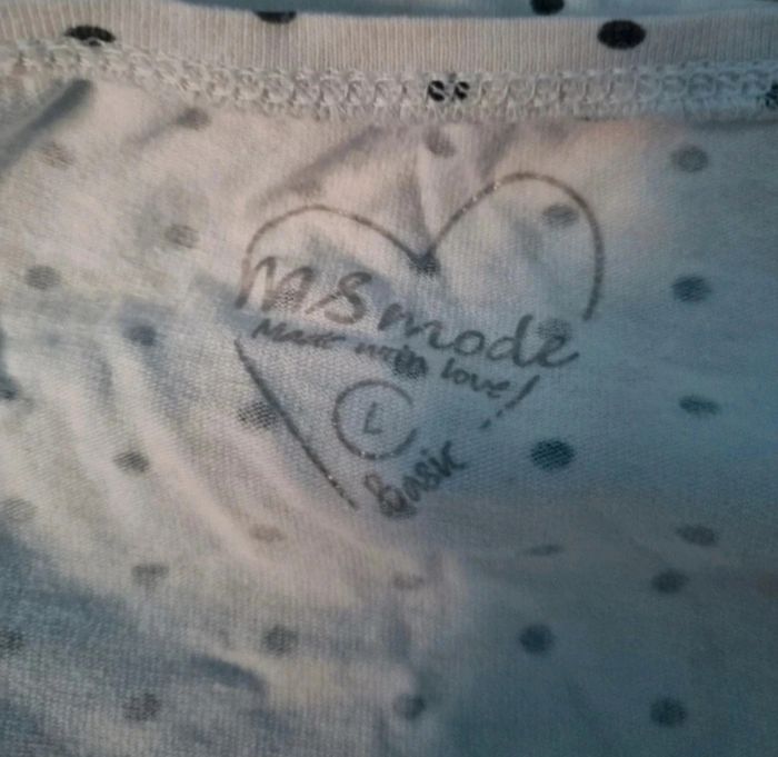 Débardeur blanc à pois noir, taille L marque M&S mode, longueur 66cm, largeur 47cm, longueur épaule à aisselle 24cm, légère tache voir dernière photo.