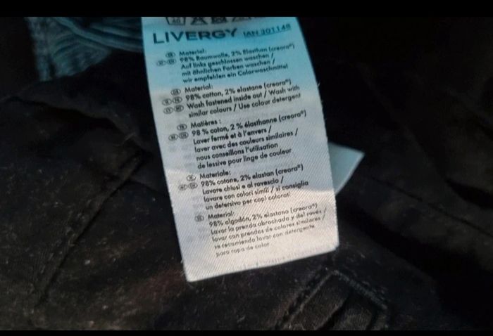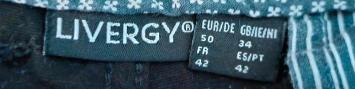 Pantalon noir taille 42,marque Livergy, longueur 106cm, largeur de la taille 42cm, largeur cuisse 29cm, largeur cheville 17cm.