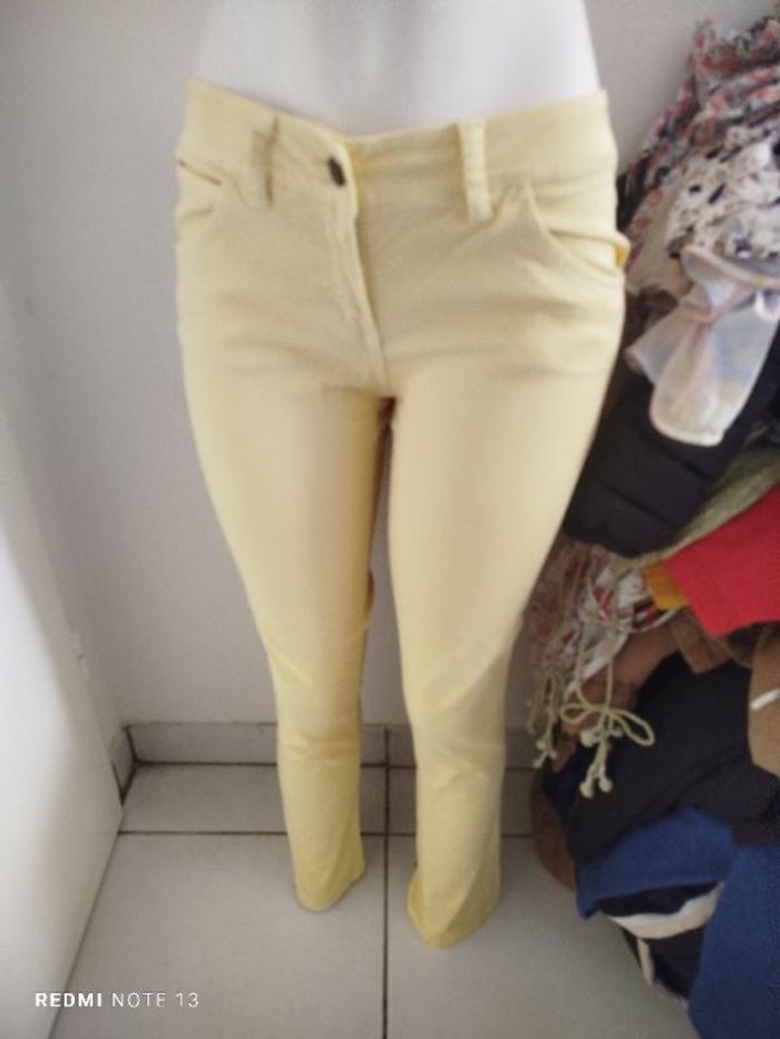 #kytie40femme. Pantalon taille 40 jaune pastel zippé poche avant mesure de la taille 40 cm tour de cuisse 55 cm hauteur 90 cm en état neuf ref 90B