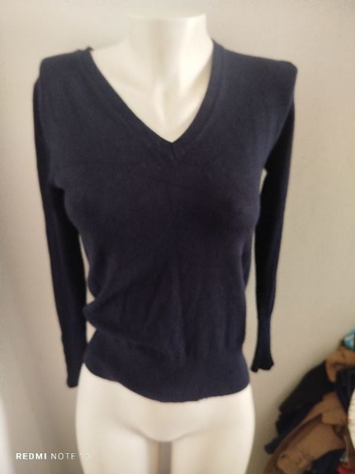 #kytieSfemme. Pull col v manche longue bleu marine de marque Zara en excellent état comme neuf avec bouton doré sur les manches mesure des épaules 34 cm des aisselles 40 cm hauteur 55 cm réf 216
