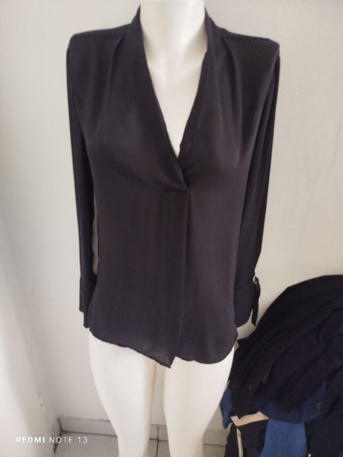 #kytie40femme. Chemise blouse manche longue taille 40 de marque maison 123 en état neuve noir et blanche en voile avec 🎀 ruban aux poignets mesure des épaules 40 cm mesure des aisselles 55 cm hauteur 65 cm ref 1246