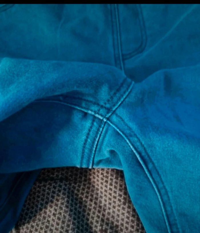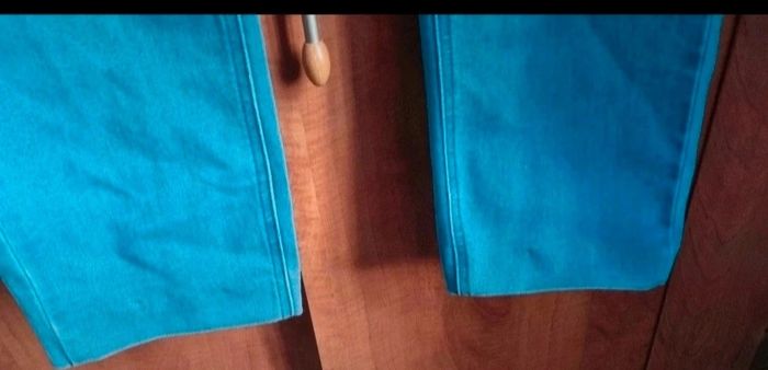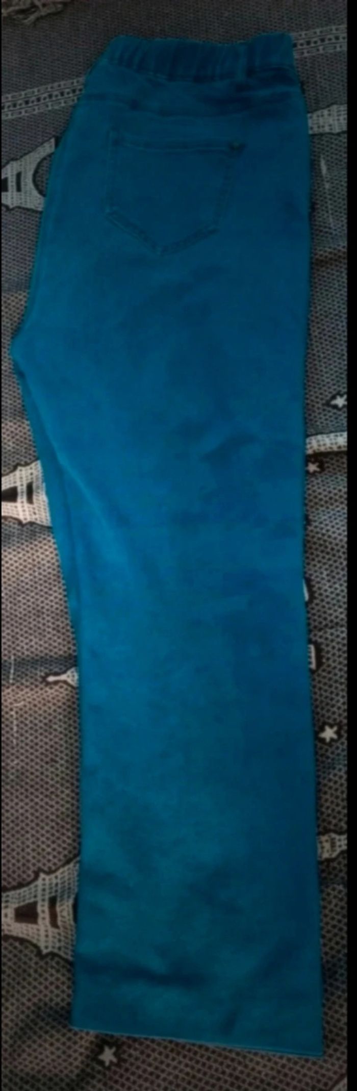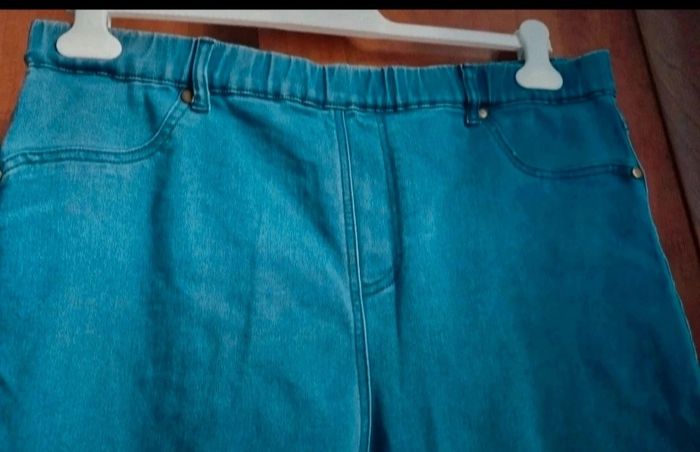 Jean élastique à la taille bleu clair, taille 48 marque U collection,(des ourlets on été fait),longueur 96cm, largeur de la taille 48cm jusqu'à 50cm, largeur cuisse 29cm, largeur cheville 16cm.