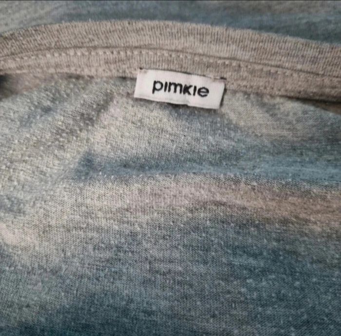 T-shirt gris avec inscription SELFIE et sequins,effet pelucheux, taille 38-40, marque Pimkie, longueur 62cm, largeur 44cm, longueur épaule à aisselle 21cm,mini trous voir dernière photo.