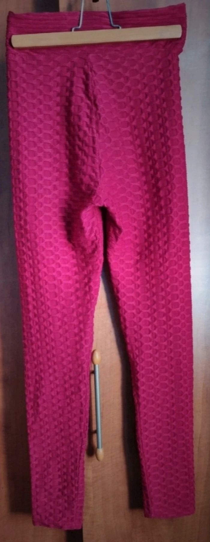 Legging de sport rose fushia,taille S-M, longueur 99cm, largeur de la taille 32cm jusqu'à 37cm, largeur cuisse 24cm, largeur cheville 12cm,agréable et léger.