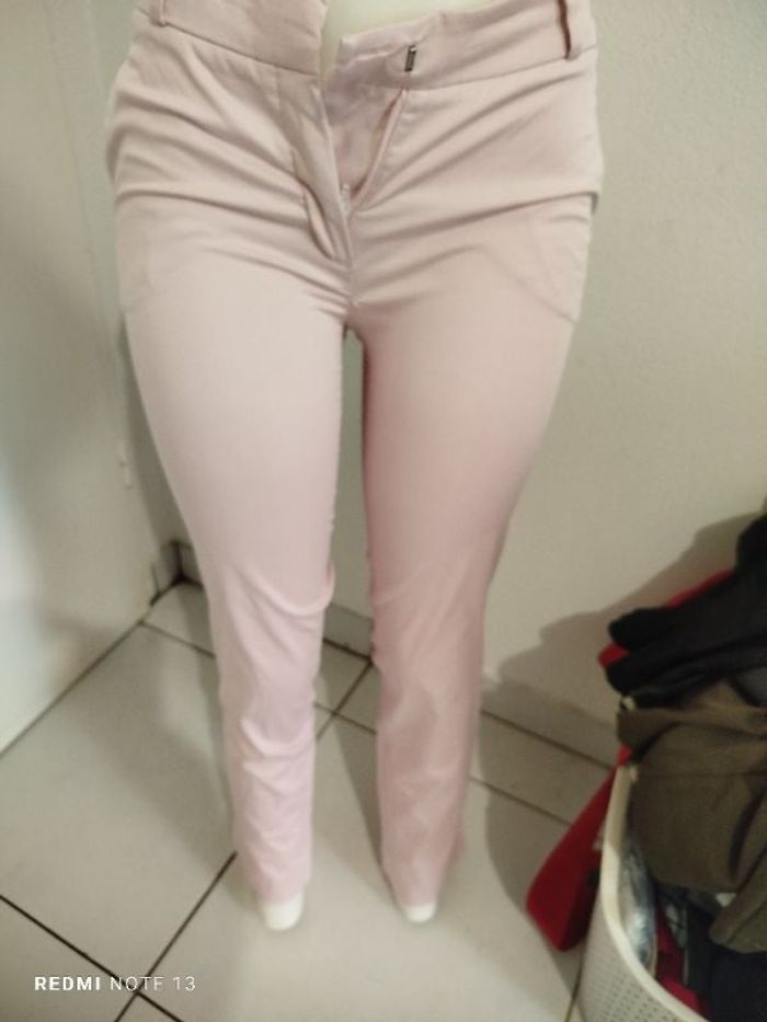 #kytie36femme. Pantalon taille 36 de marque camaïeu en parfaite état comme neuf rose pastel effet satiné zippé avec une accroche poche avant fausse poche avant mesure de la taille 36 cm tour de cuisse 55 cm hauteur 90 cm re M60