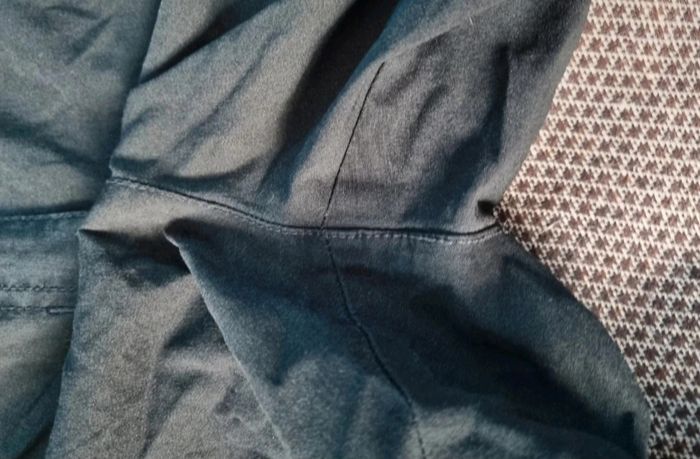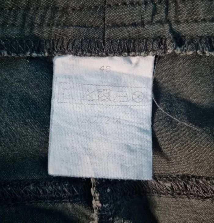 Pantalon noir taille 48 (élastique),fermeture zippée avec bouton, longueur 86cm, largeur de la taille 47cm jusqu'à 51cm, largeur cuisse 28cm jusqu'à 31cm, largeur cheville 17cm,mini tache voir dernière photo.