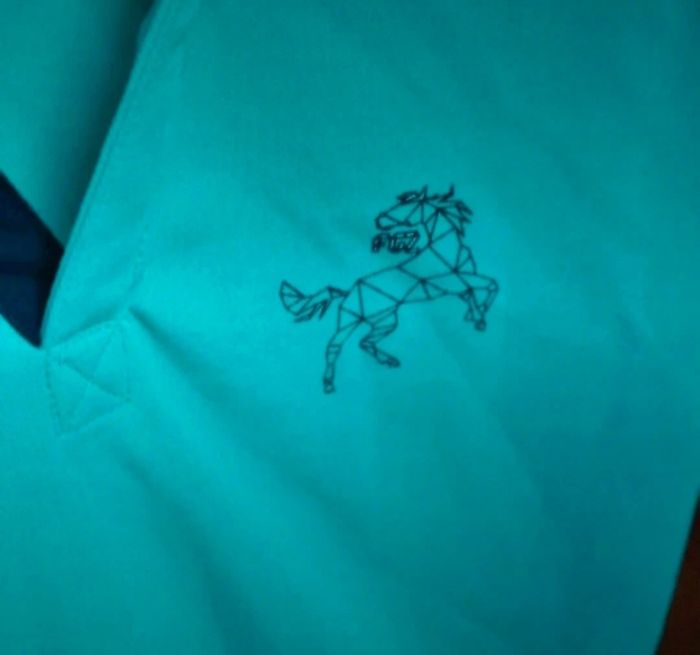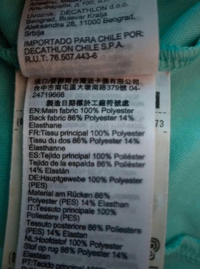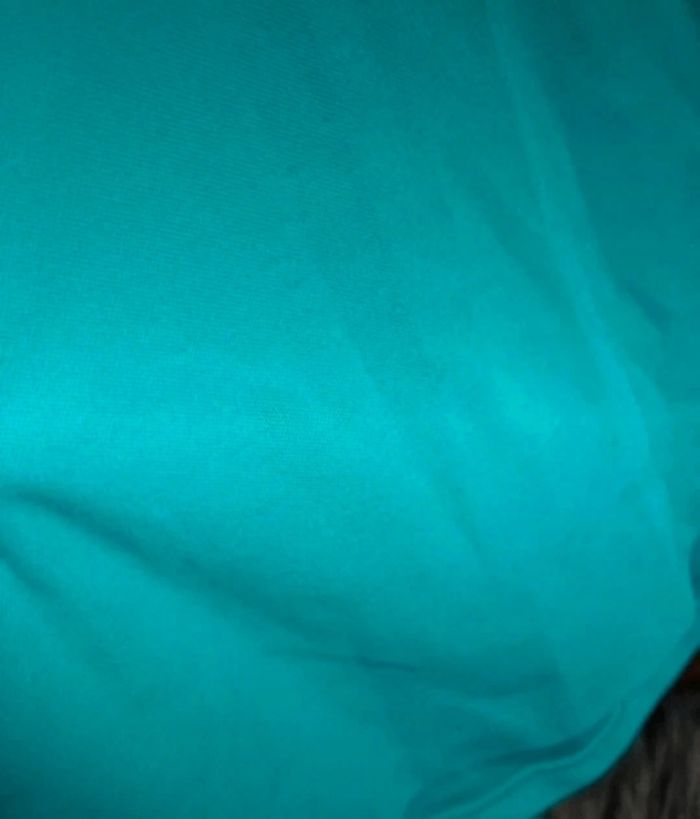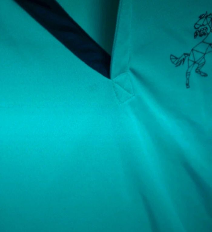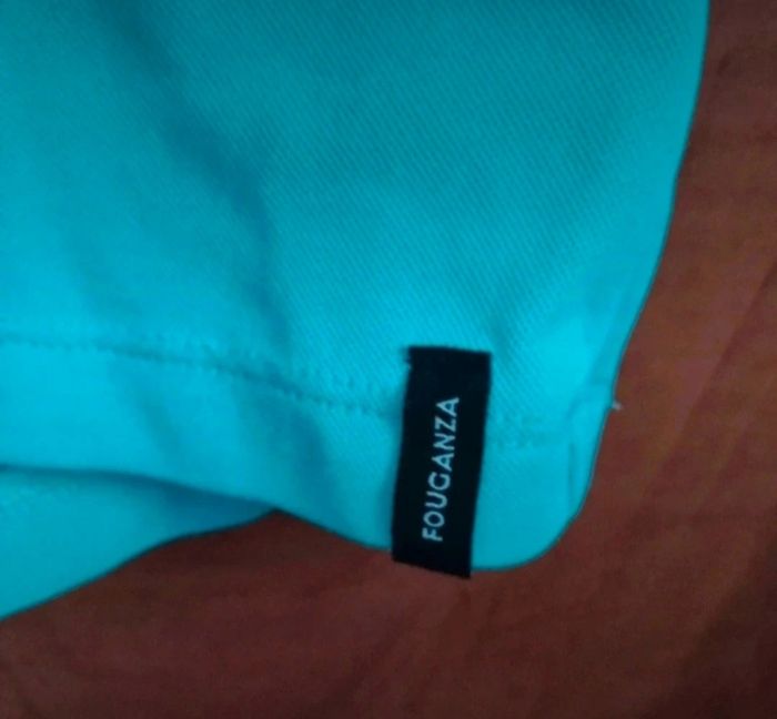 polo vert turquoise, taille 14ans, longueur 56cm, largeur 38cm,longueur épaule à aisselle 15cm,largeur épaule à épaule 37cm, marque Fouganza,légère taches voir photos