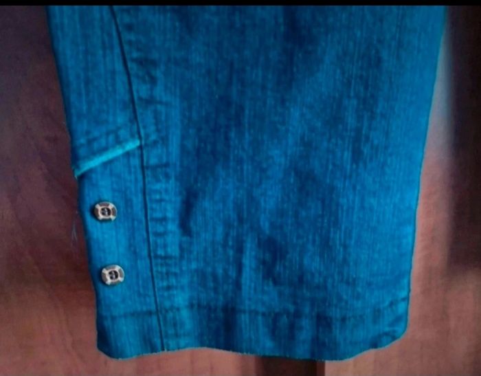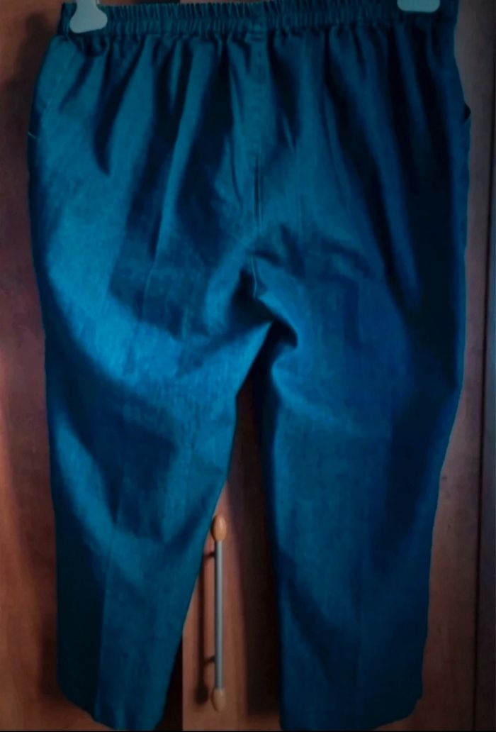 Pantacourt en jean taille 4,élastique à la taille, longueur 81cm, largeur de la taille 38cm jusqu'à 47cm, largeur cuisse 30cm,très bonne état voir neuf car très peu porté.