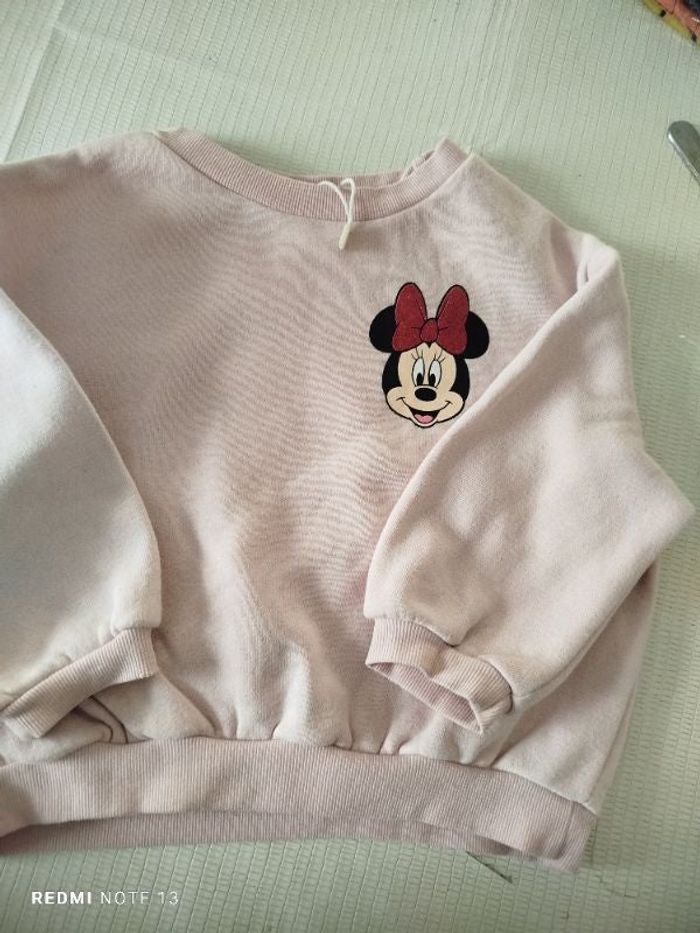 #kytie24moisfille. Sweat manches longues taille 24 mois en coton rose pâle Minnie ref MN en très bon état