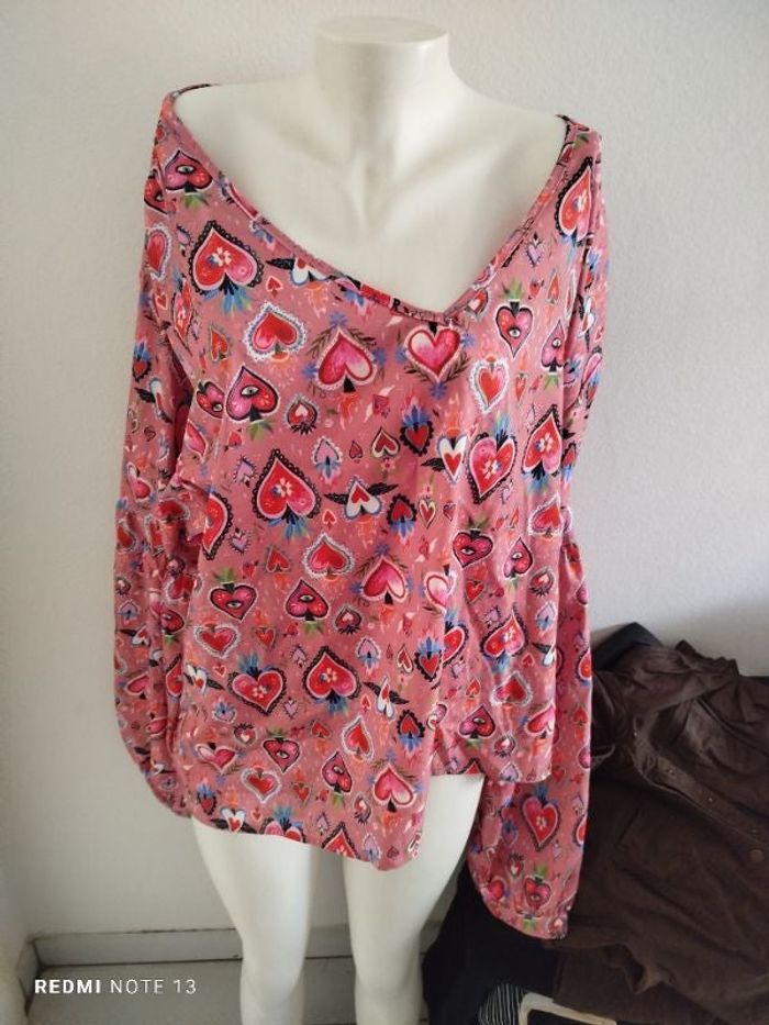 #kytie5XLfemme. Tunique blouse manches longues taille 5XL puis des souples col V on est pas parfait les manches se ferment par un petit bouton 55 % coton 80 15 % polyester mesure des épaules 65 cm mesure des aisselles 75 cm hauteur 70 cm réf L89