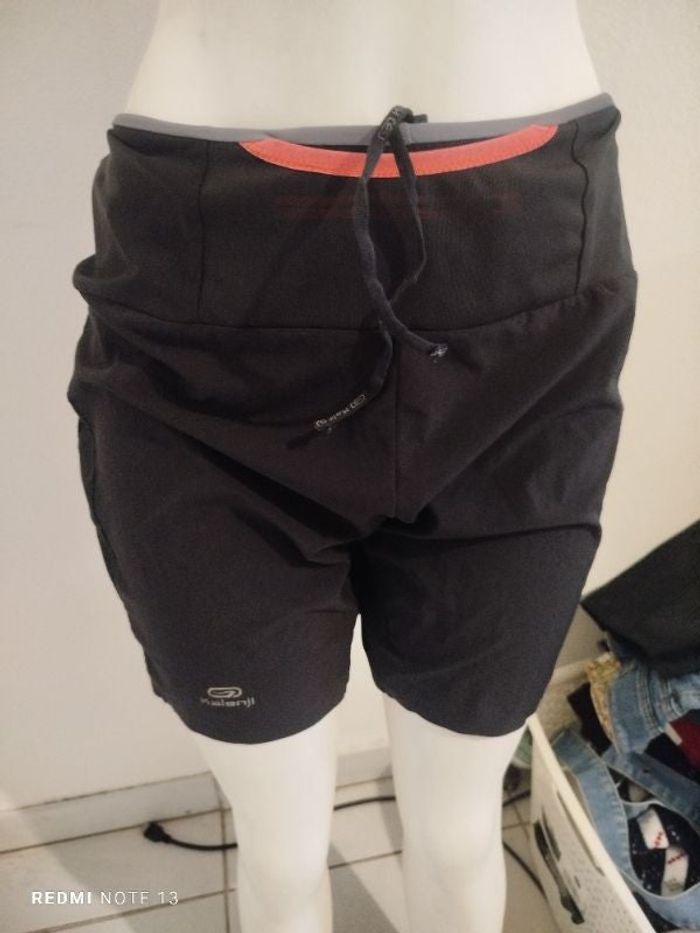 #kytieMhomme. Maillot de bain 1 M de marque kalenji sliper noir et corail poche sur le devant doublé avec une fermeture éclair double poche taille élastique avec un cordon et à l'arrière sur les fesses double poche dont une avec fermeture éclair une poche de chaque côté à l'arrière élastique avec tissu alvéolé en excellente état mesure de la taille 38 cm tour de cuisse 65 cm hauteur 45 cm réf KL34