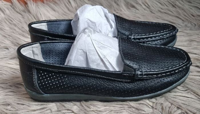 Mocassins cuir noir pointure 38,marque La Bottines Souriante, respirante avec pleins de mini trous et confortables idéal pour l'été.