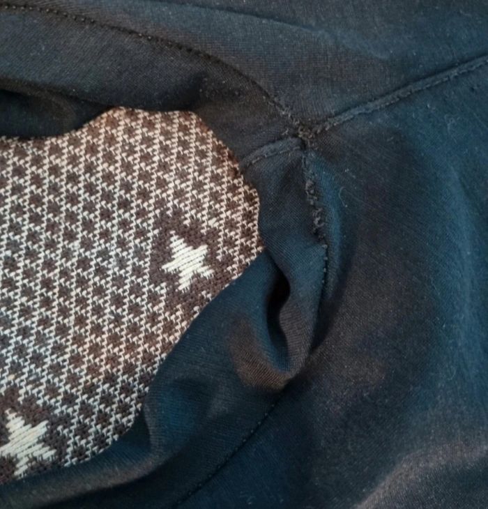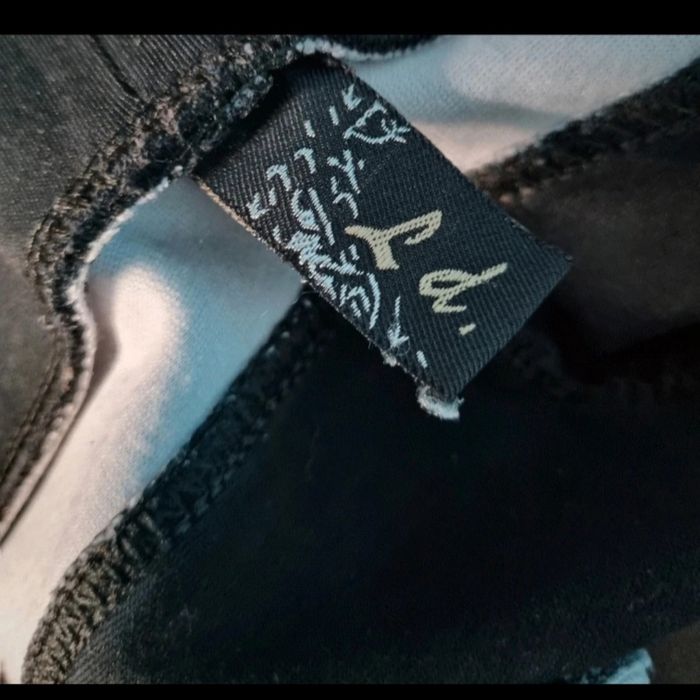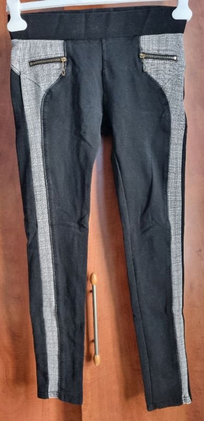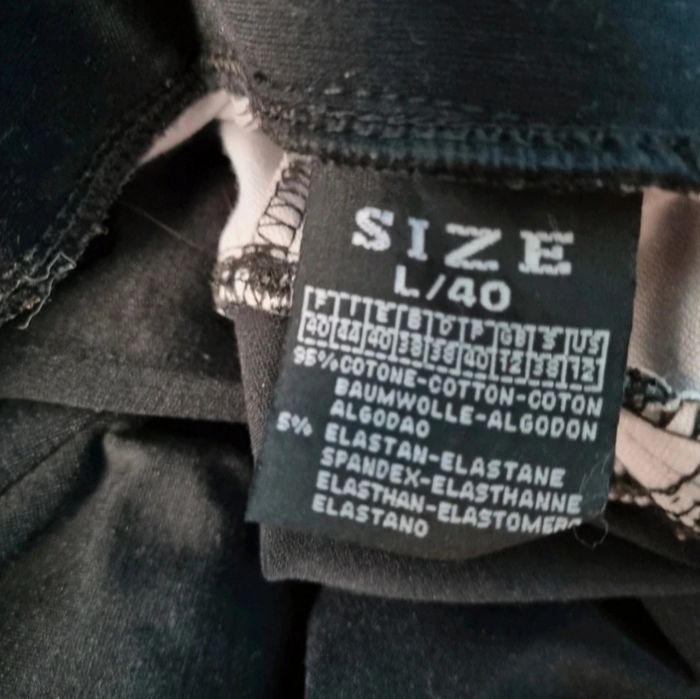 Pantalon noir avec motif carreaux gris,taille 40,fausse poches, longueur 91cm, largeur de la taille 37cm, largeur cuisse 24cm, largeur cheville 12cm,recousu voir dernière photo.