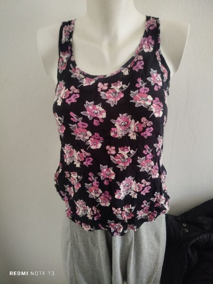#kytieSfemme. Débardeur taille S de marque Jennyfer fluide et léger en état neuf noir fleurie mesure des aisselles 36 cm hauteur 60 cm réf 34J