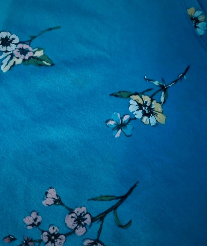 T-shirt bleu motifs fleurs taille S - photo numéro 6