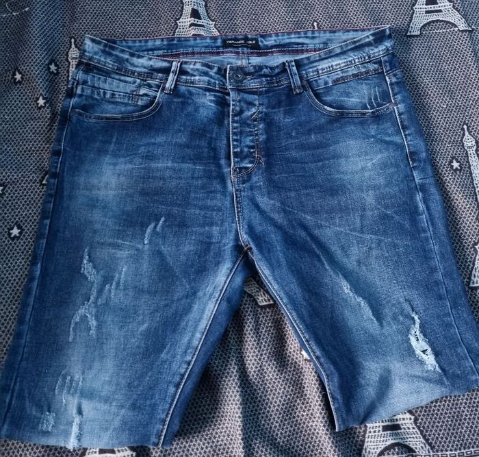 Jeans effet délavé et usé avec troués taille 48