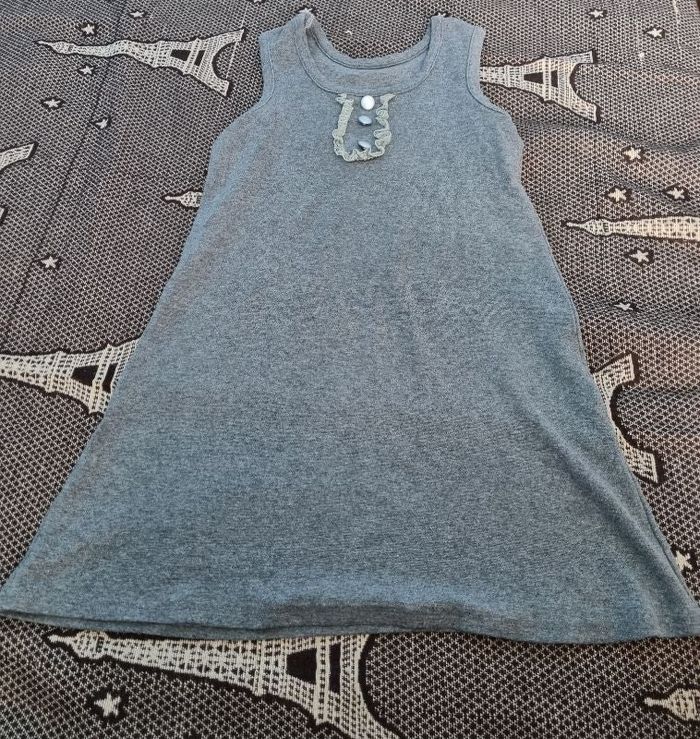 Tunique gris taille 14ans ,longueur 64cm, largeur 40cm,longueur épaule à aisselle 17cm.