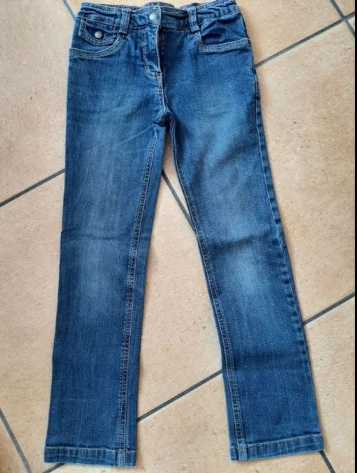 8 ans jean Tex bleu. Passants ceinture. Elastique interieur à boutons pour régler la taille. Coton