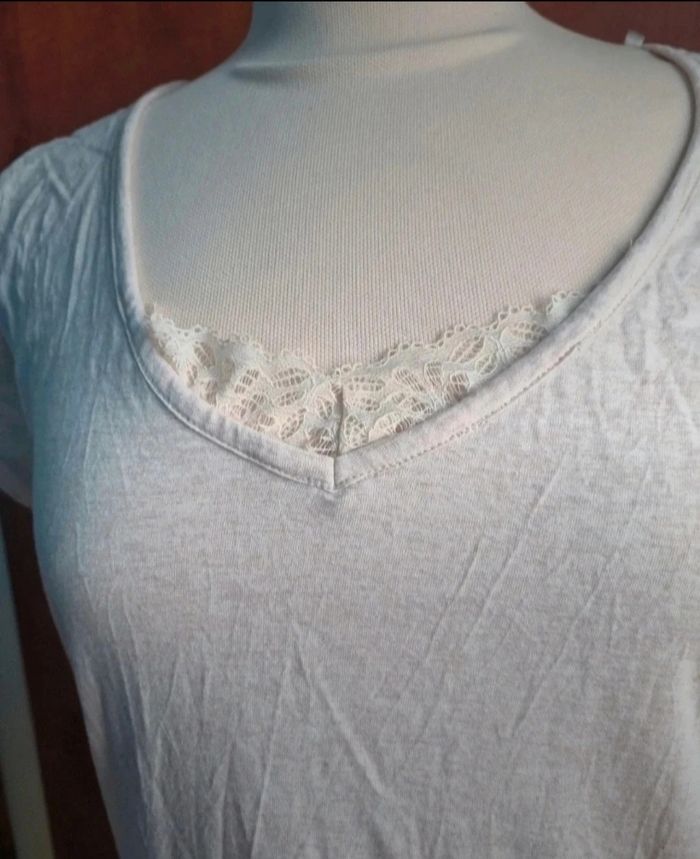 Robe de nuit blanc à reflet crème, marque Mieux by Gemo, taille XL,longueur 89cm, largeur épaule à épaule 41cm,longueur épaule à aisselle 22cm, largeur 51cm.
