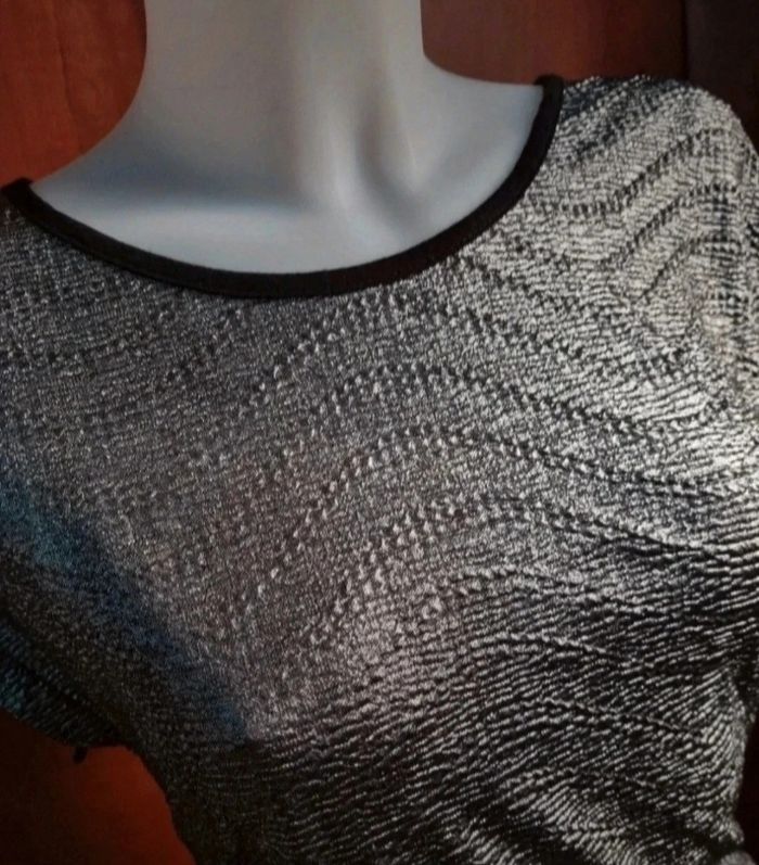 Long t-shirt taille 34 noir et argenté pailleté - photo numéro 3