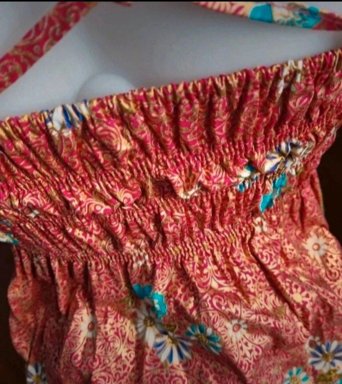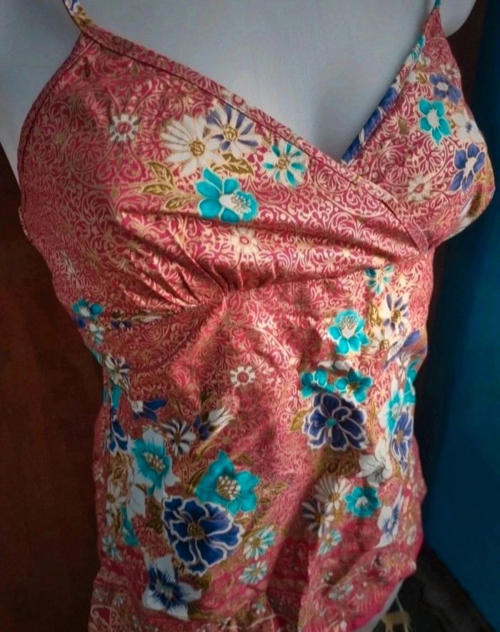 Top à motif fleur taille S/M,marque Antoine Akopian,élastique dans le dos,bretelles réglable, zip sur un coté,effet fendue sur le bas des 2 cotés,100%coton,longueur 48cm, largeur 36cm.