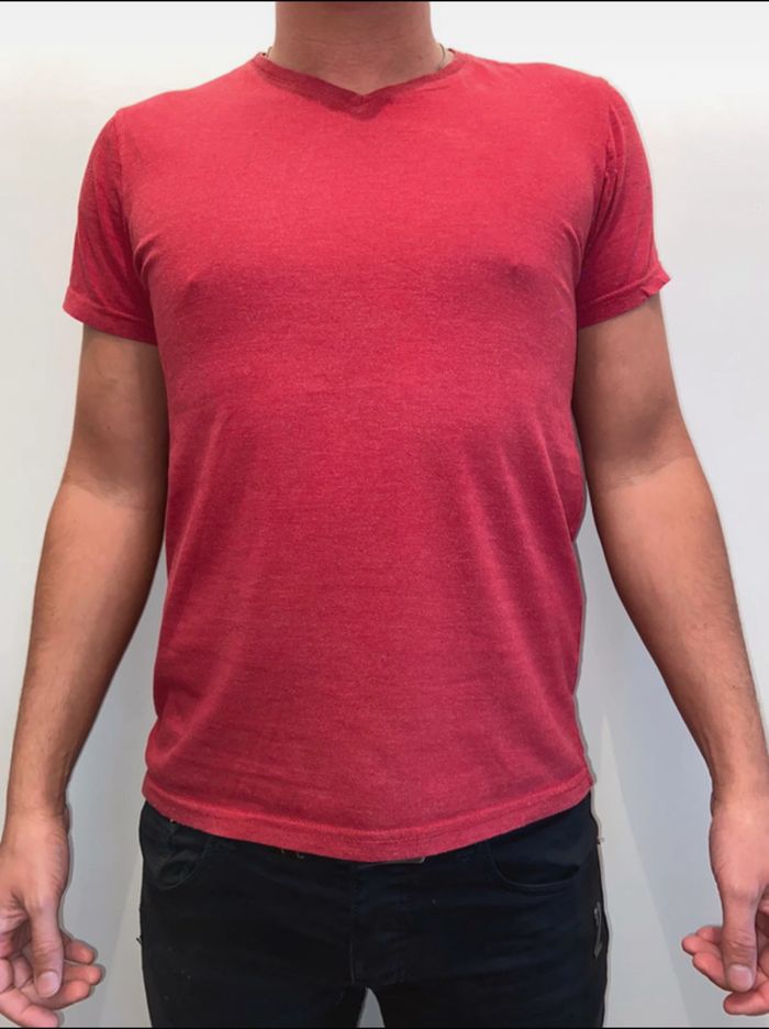 Tee-shirt rouge, col V, taille S, coupe traight Fit, marque LH.