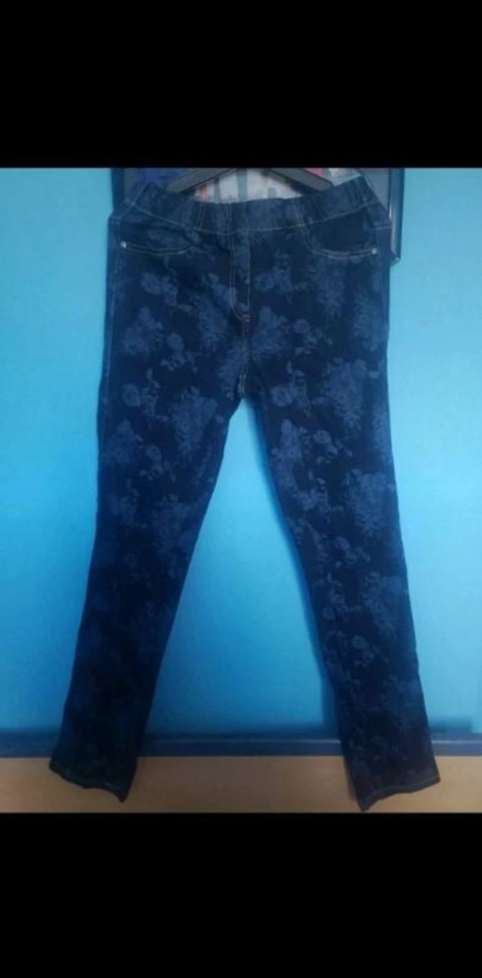 Jeans à élastique motifs fleurs taille 40