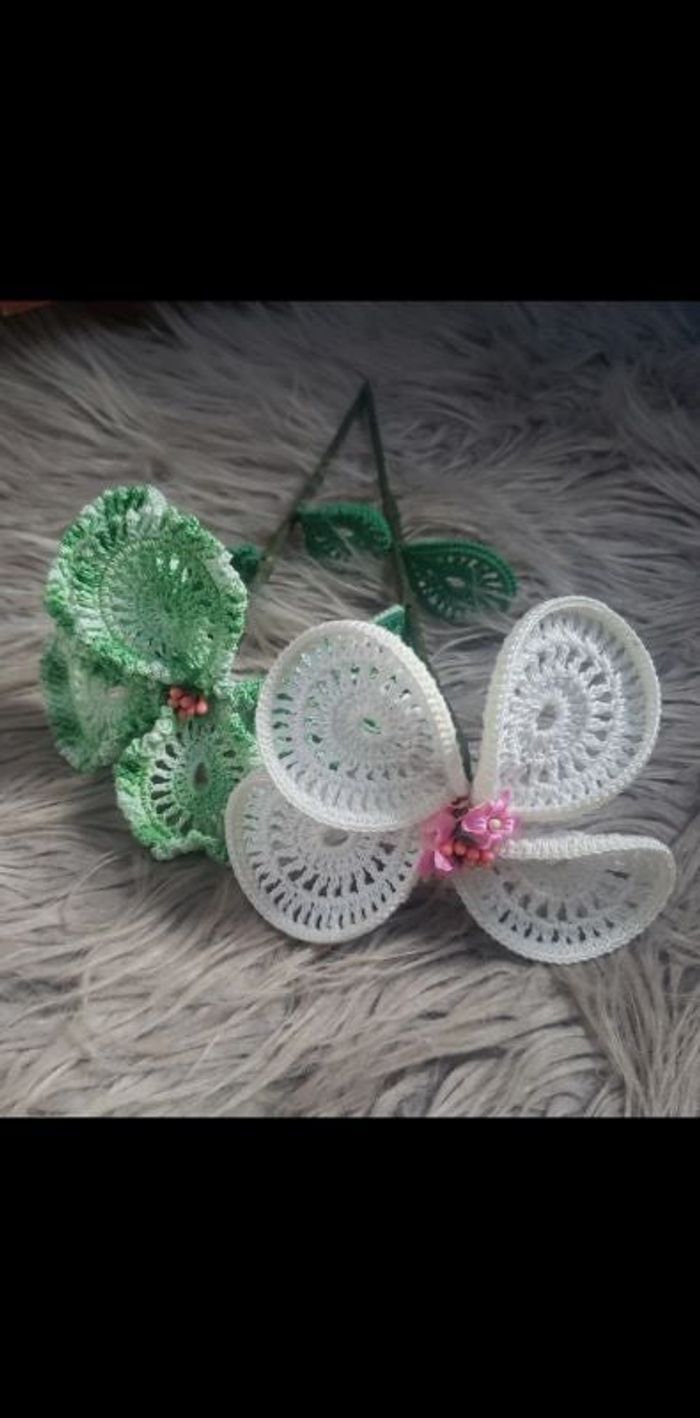 Lot 2 fleurs décoratifs fabriquer en crochet,35cm de long.