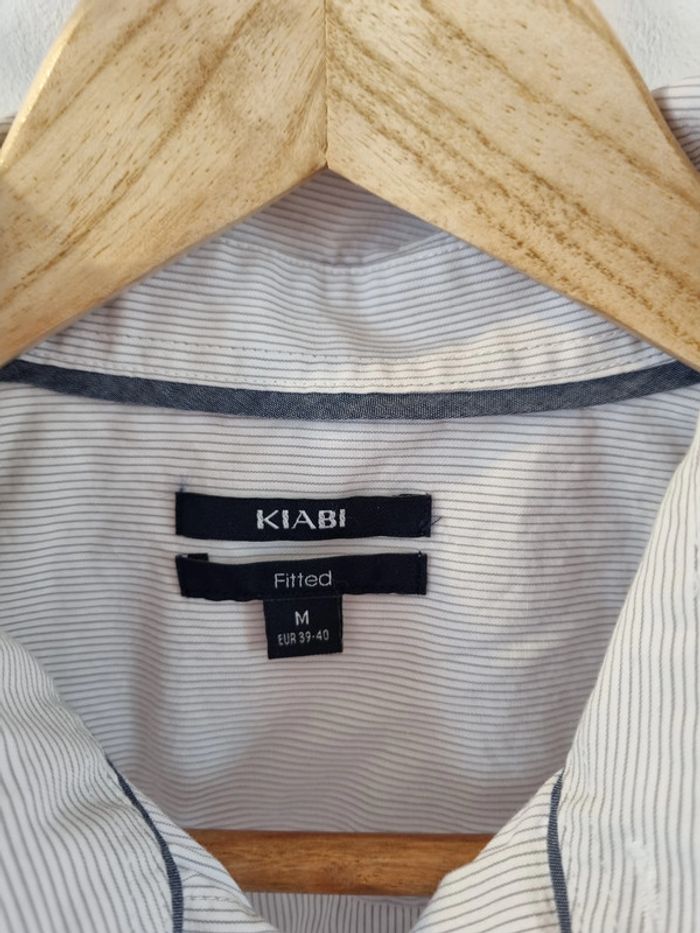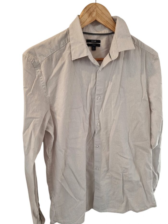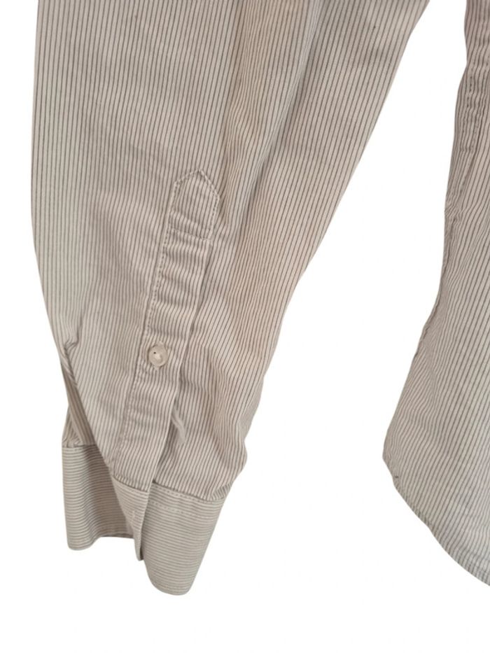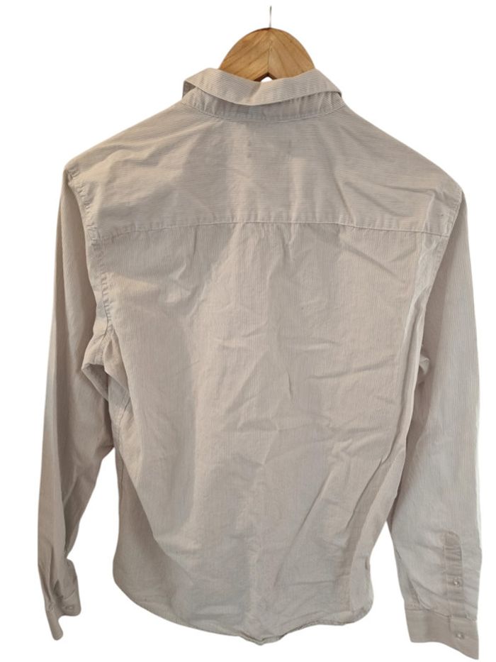 Chemise manches longues rayés à la verticale. Couleur des rayures plutôt grises. Boutons et boutons au niveau des manches. Peu porté