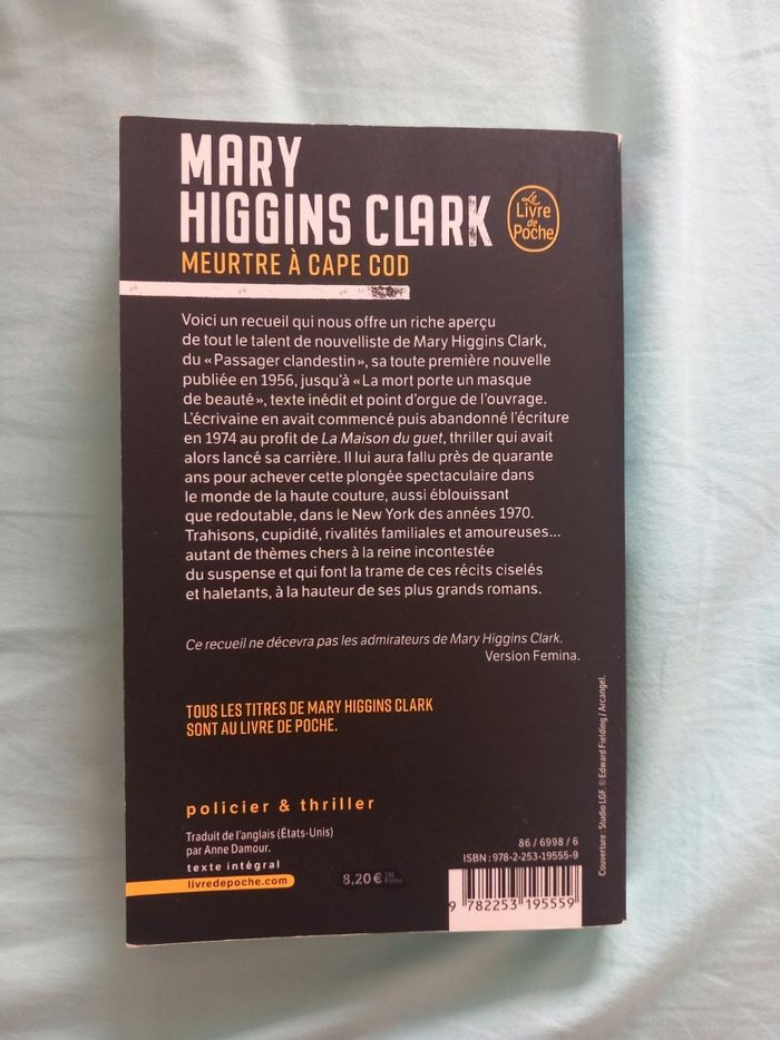 Livre " Meurtre à Cape Cod " , Mary Higgins Clark