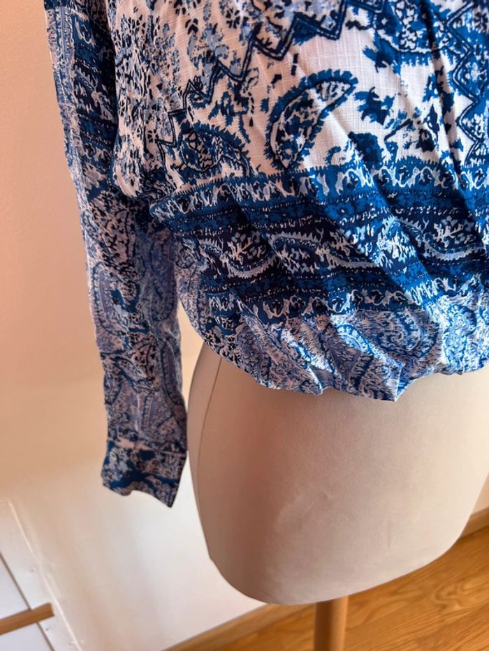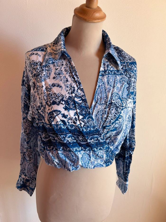 Blouse cache-coeur, bleue et blanche, Zara - photo numéro 1