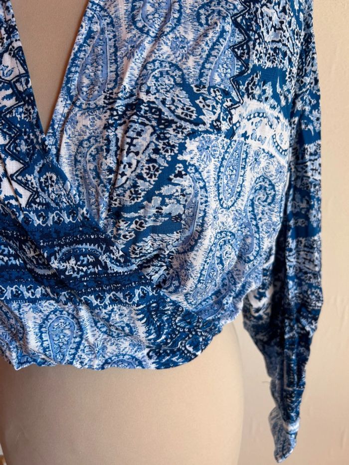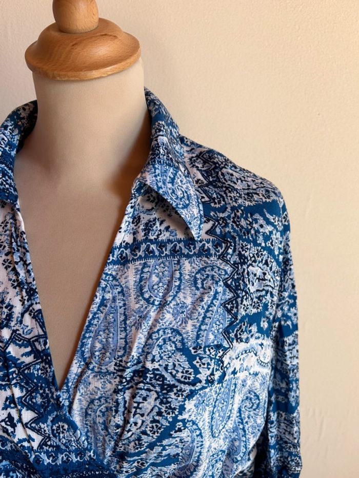 Blouse cache-coeur, bleue et blanche, Zara - photo numéro 2