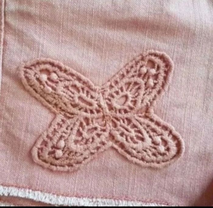 Saumon, taille réglable, broderie papillon
