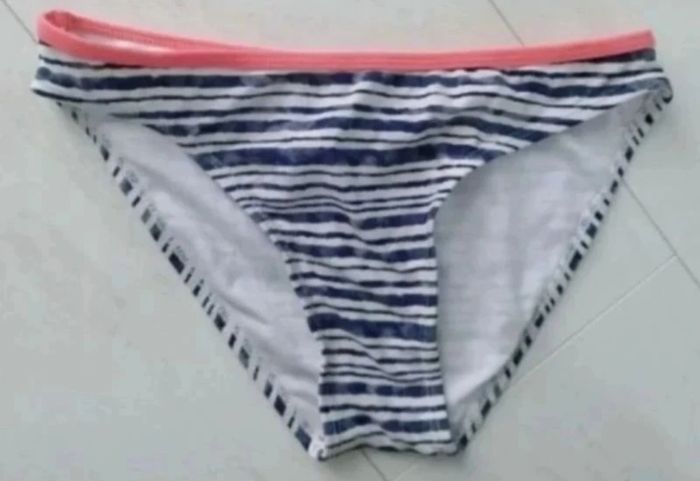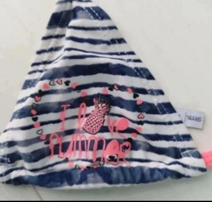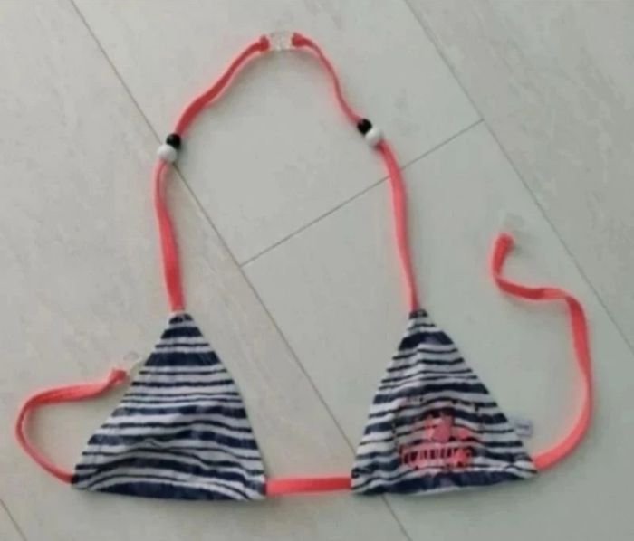 Blanc et bleu foncé à rayures, contour orange / bretelles non réglables