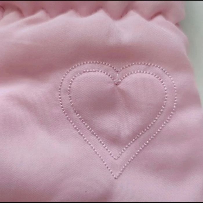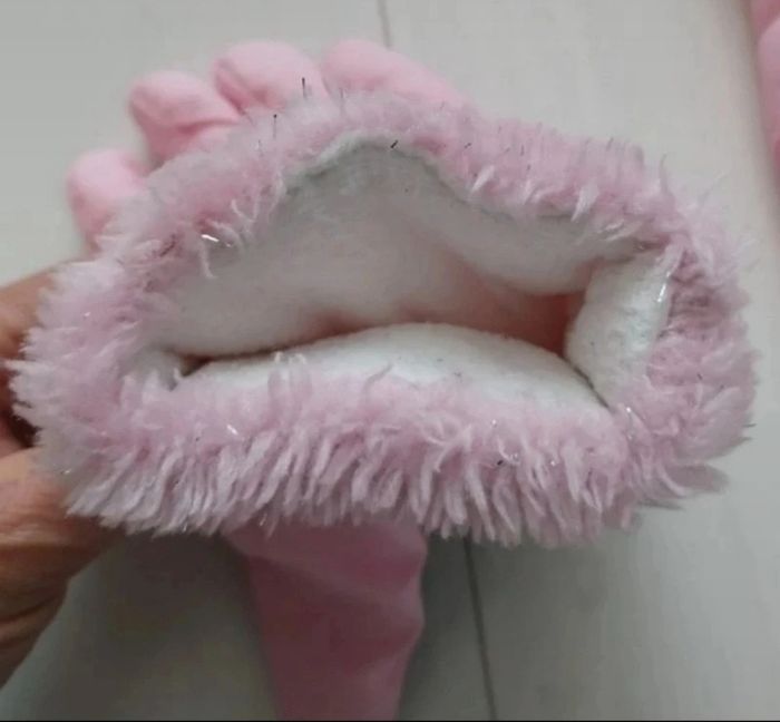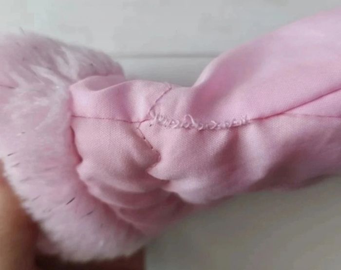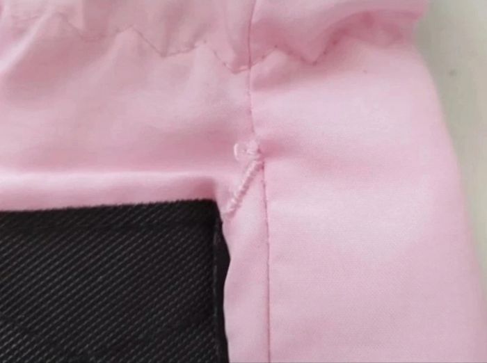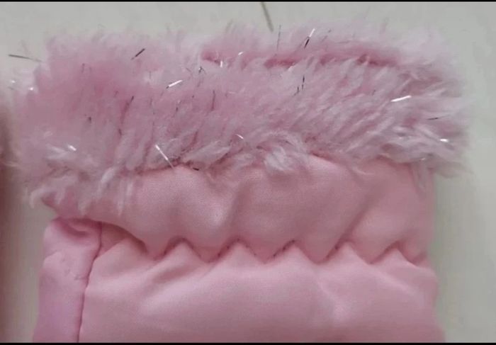 Rose pâle avec fourrure et fils argentés, protection noire, 2 reprises de couture en surface (voir photos)