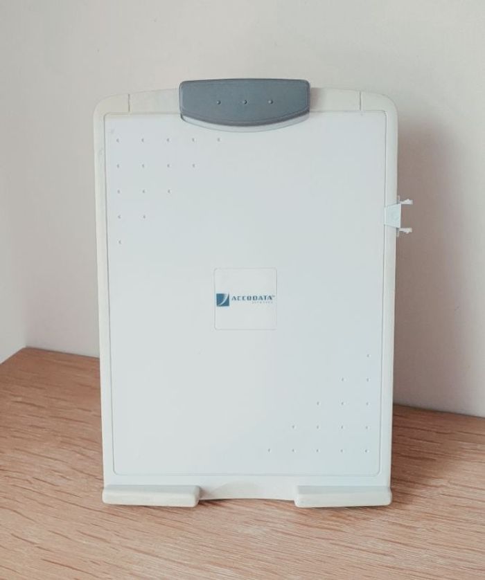 Porte-copies de bureau de la marque ACCODATA - Type chevalet - Format A4 - Réglable en hauteur - Inclinable sur plusieurs niveau - Pince de maintien - Réglette de suivi sur le côté ❌ Excellent état, juste la couleur (gris) qui est un peu passé par le soleil mais ne gêne en rien à son utilisation #portecopiedebureau #portedocument #supportcopie #accessoiredebureau #accessoireordinateur #accodata