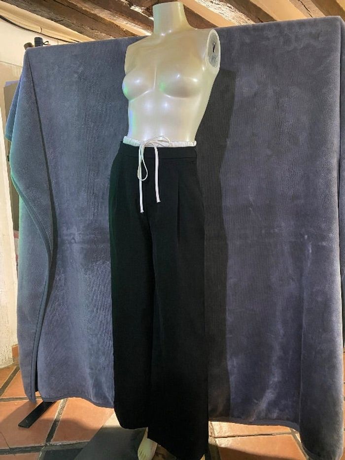 Pantalon noir décontractée large ceinture satinée blanche taille Xs