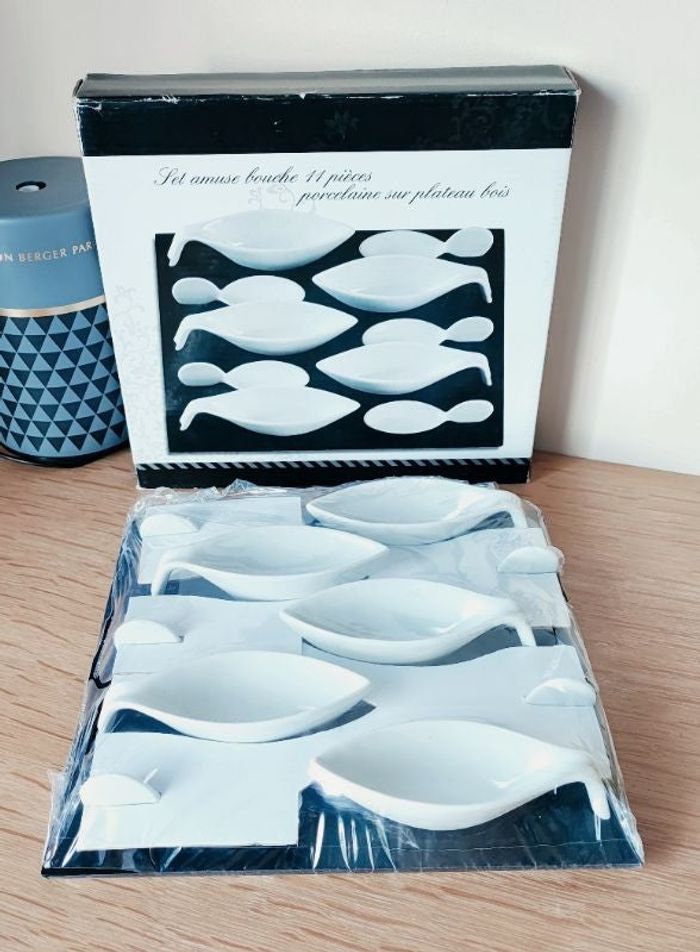 🎁 Set amuse bouche 11 pièces en porcelaine et plateau en bois - Cora - Neuf 🎁