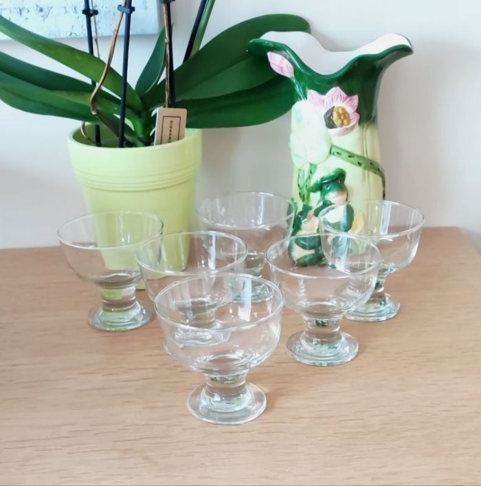 Lot de 6 coupes à glace ou à salade de fruits sur pieds 🎗️ Hauteur : 9 cm - Profondeur : 5 cm - Diamètre : 9,5 cm ❌ Excellent état