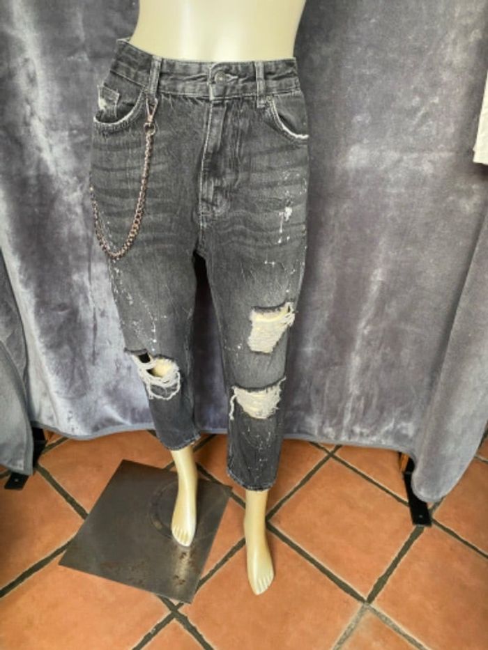 Jean noir avec chaîne et trou et tache blanche a la mode pull & bear taille 40