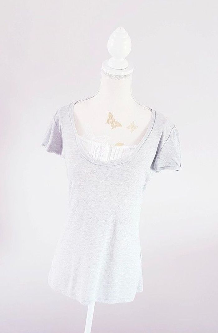 T-shirt à manches courtes effet 2 en 1 extensible Motif floral ajouré 👩 Taille 44 (étiquette de la taille manquante) 🎗 Longueur : 64 cm ❌ Excellent état car très peu porté