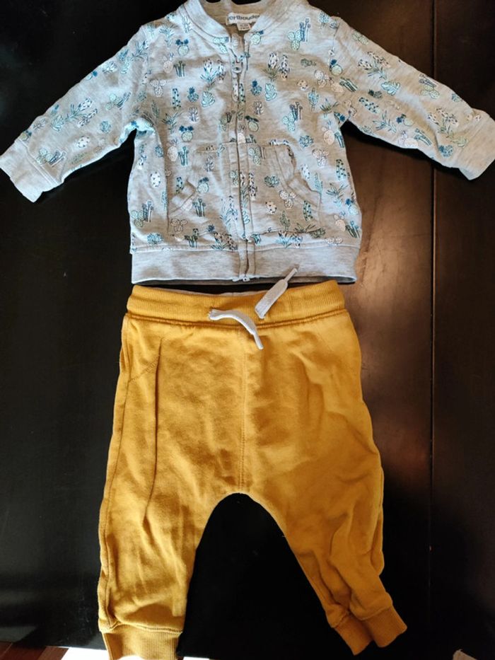 Ensemble avec veste cactus et jogging orange Kiabi et Verbaudet Taille 6 mois