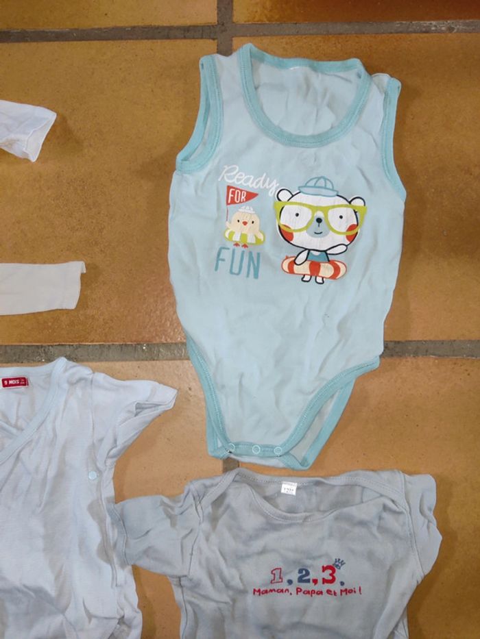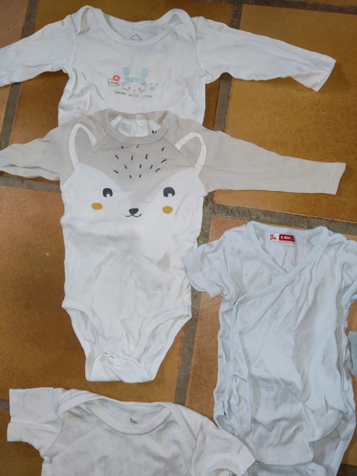 Lot de 6 body 9 mois Divers marque (1 body 12mois qui taille petit dans le lot)