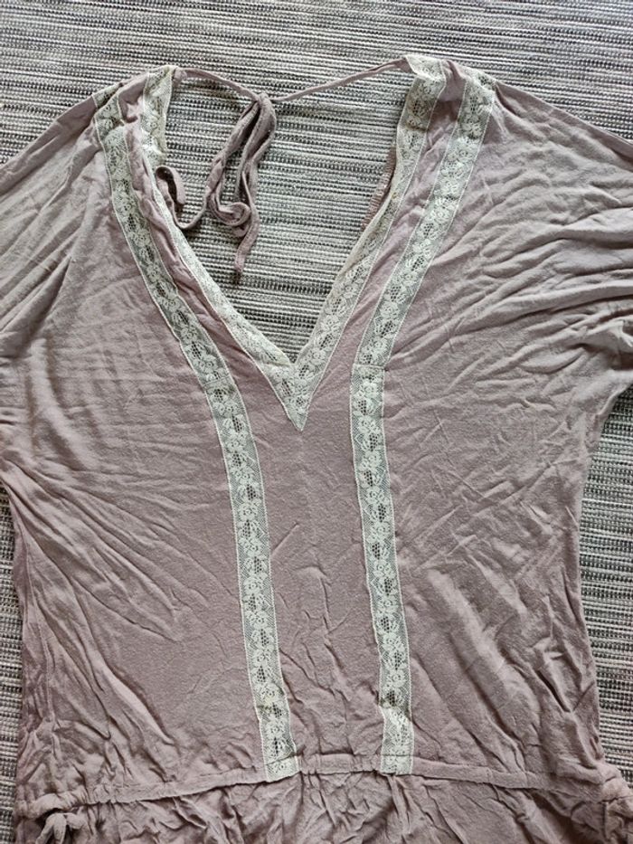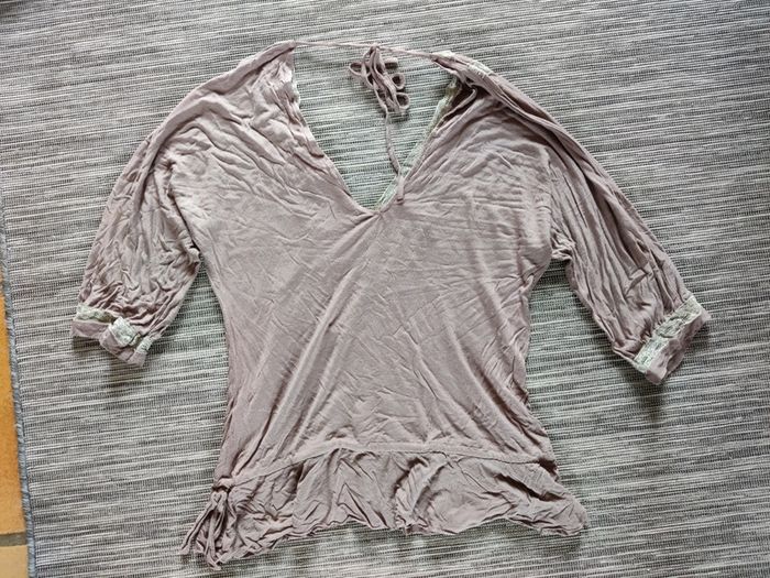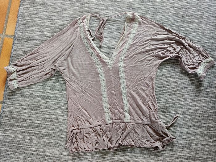 Haut fluide a noué derrière le cou dentelle Couleur taupe