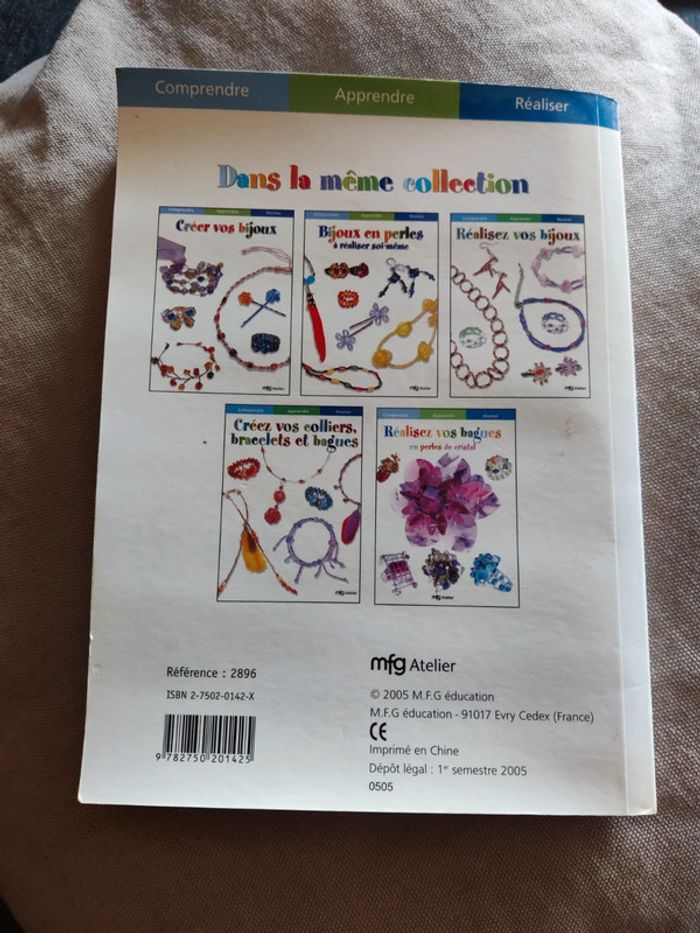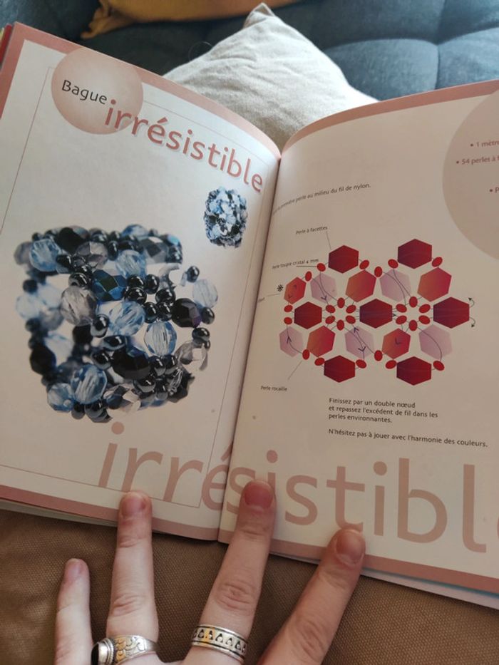 Livre réalisez vos bagues en perle cristal Page de couverture un peu plié mais il est totalement lisible