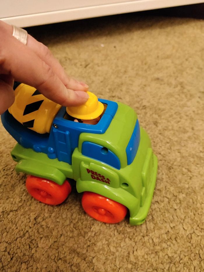 Camion toupie qui avance lorsqu'on appuie sur le bonhomme