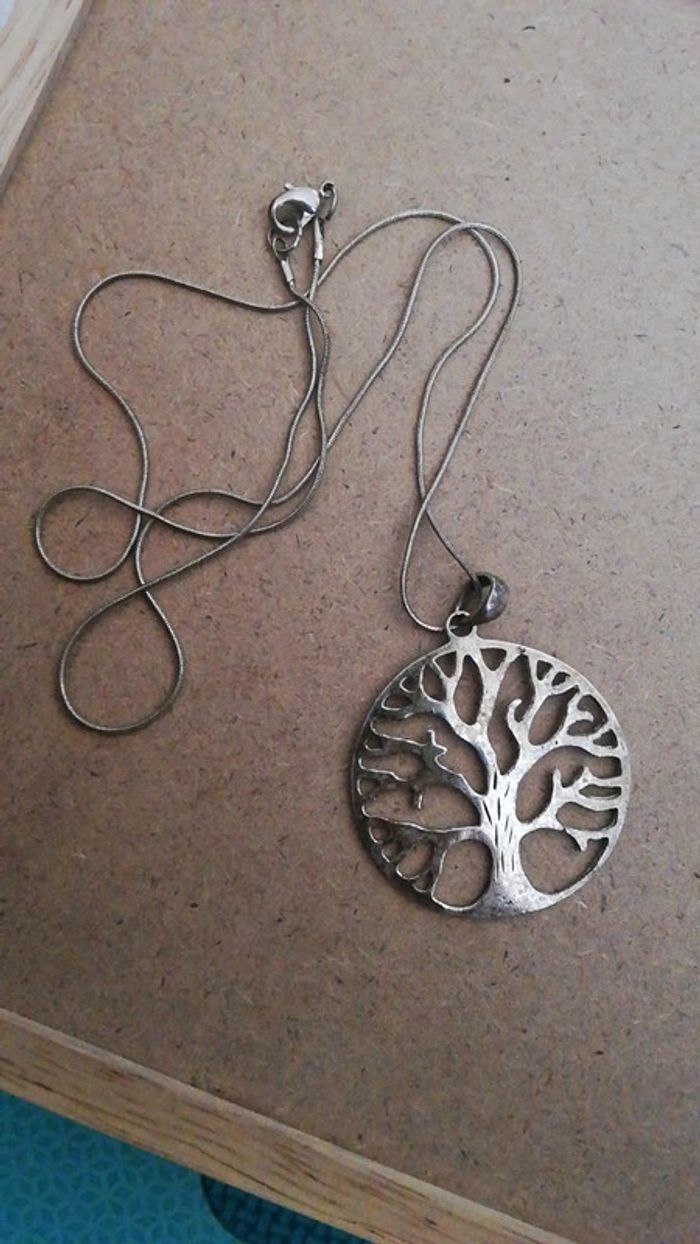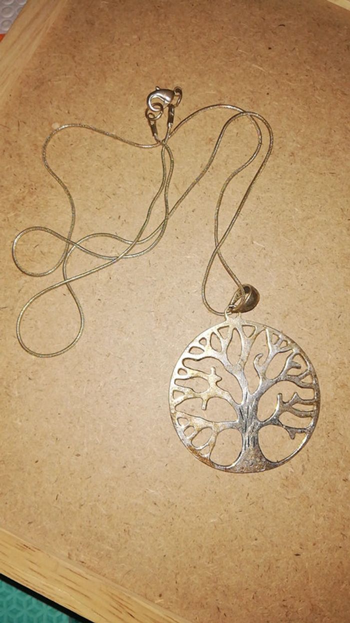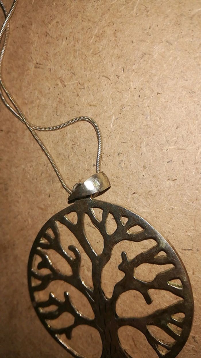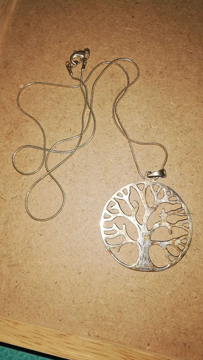Pendentif arbre en argent 925 et son collier en métal argenté. Pendentif à refaire briller en le lustrant au chiffon.