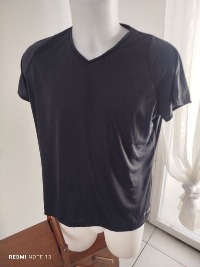 #kytieXLhomme. Tee-shirt manches courtes taille XL/XXL de marque Decathlon fluide léger très fin alvéolé de couleur noir mesure des aisselles 56 cm hauteur 65 cm en état neuf ref J789