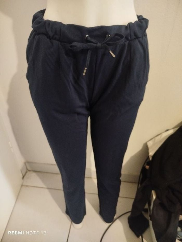 #kytieLfemme. Jogging taille L de marque esmara bleu marine avec liseret sur les côtés doré neuf poche avant taille élastique avec cordon mesure de la taille 40 cm tour de cuisse 60 cm hauteur 90 cm cheville ample 30 cm réf E89