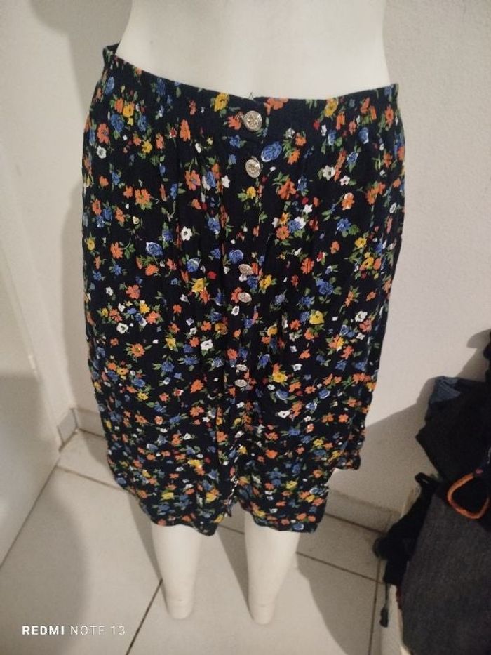 #kytie36femme. Jupe taille 36/38 mi longue taille élastique plissée froissé avec de boutons sur toute la longueur devans 100 % viscose mesure de la taille 36 cm élastique tirer au maximum 58 cm hauteur de la jupe 65 cm en excellent état comme neuf fleuri sur un fond bleu marine fluide et souples légère ref G4